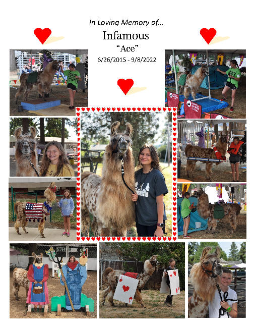 "Shadow was everything I dreamed of in a llama. She had an amazing personality, a super temperament as well as being strikingly beautiful! Shadow was loved from the first time we met her and we were thrilled beyond words to have her in our herd! She was an amazing lady we will never forget and a true inspiration to the llama world!"